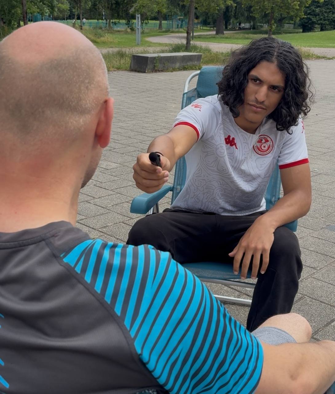 🎥 Un mini plateau télé, installé en plein cœur du quartier – une place, un marché, un hall d’immeuble